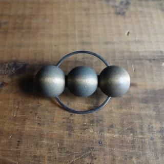 aarikka 半球体が三つ連なった木製ブローチ(くすんだ鶯色)