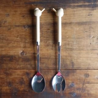aarikka 鳥さんの "ナイフとフォークのセット"(青・緑)