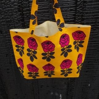 marimekko "VIHKIRUUSU"(黄色×赤ピンク)ハンドメイドトートバッグ