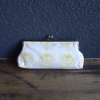 marimekko "VIHKIRUUSU”(白×黄色)ハンドメイド横長がま口ポーチ