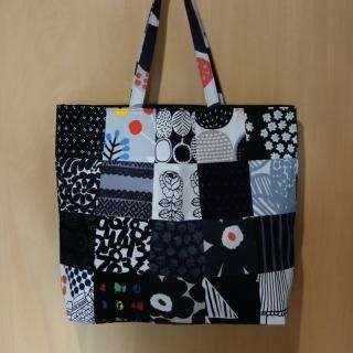marimekko パッチワーク ハンドメイドマチ付き肩掛けバッグ(黒系)