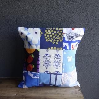 marimekko "パッチワーク" ハンドメイドのクッションカバー(青系1)