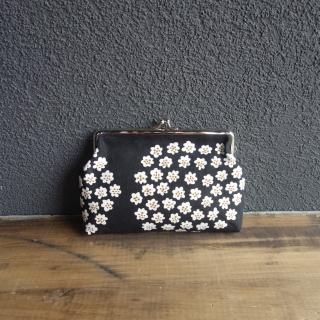 marimekko "puketti"(黒)ハンドメイドのがま口ポーチ(キャンバス地)