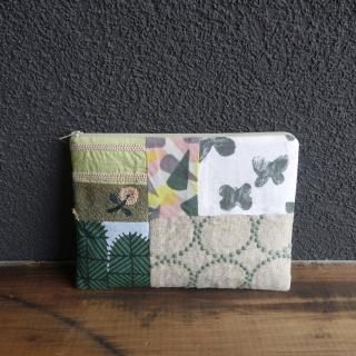 mina perhonen パッチワーク(グリーン系)ポーチ