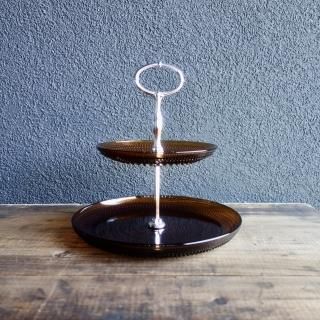 Nuutajarvi "Kastehelmi"(ブラウン)ケーキスタンド(二段)