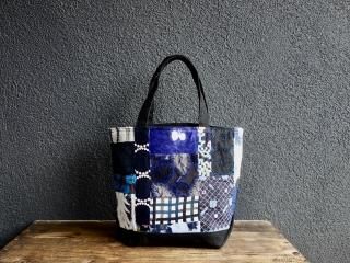 mina perhonen パッチワーク(黒・紺系)横長トートバッグ