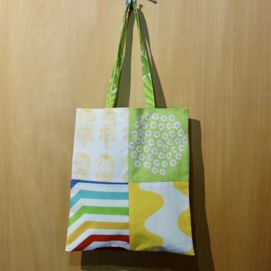 marimekko(マリメッコ)パッチワーク(黄×緑系)トートバッグ(34×30cm)