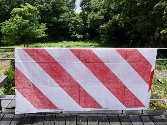 この大胆なラインデザインをそのまま壁掛けしたり、テーブルクロスやカーテン、仕切りや目隠し、ディスプレイクロス、はたまた何か物づくりの加工用の材料にしてもシンプルに素敵で面白いパターンだと思いますので、空間演出などにお役立て下さい。ある意味モダンデザインで和の感じも出せるのではと期待しております。