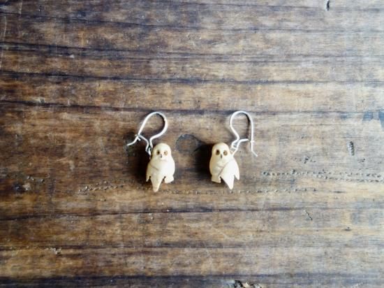 白樺の木のコブを削って作られたフクロウがモチーフの大変可愛らしいほのぼのとするピアスです。