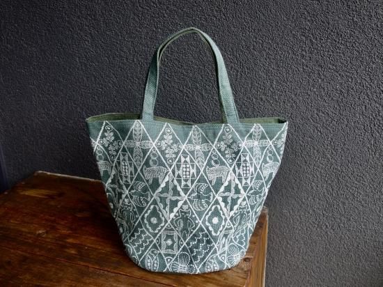 mina perhonen "symphony"(green × pail blue)パターンのバケツ型バッグとなります。※基本的に未使用のお品となります。