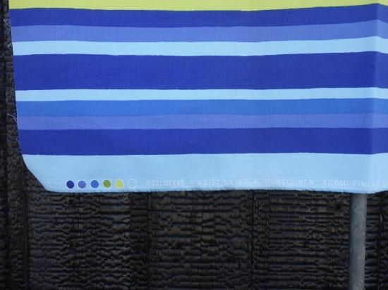 marimekko(マリメッコ)"ONNELLINEN"(オンネリネン / 青・黄・緑)TEXTILE 大きな端切A