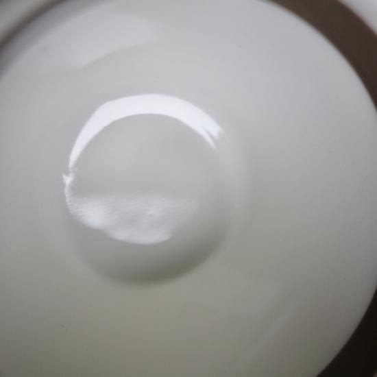 釉薬ムラと薄茶色汚れが重なった様な小さな跡は薄っすらで概ね綺麗な状態です。
