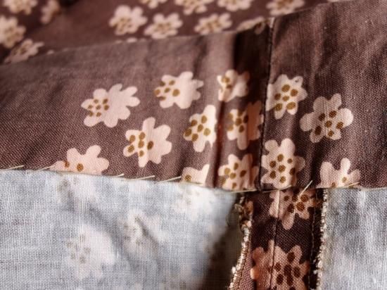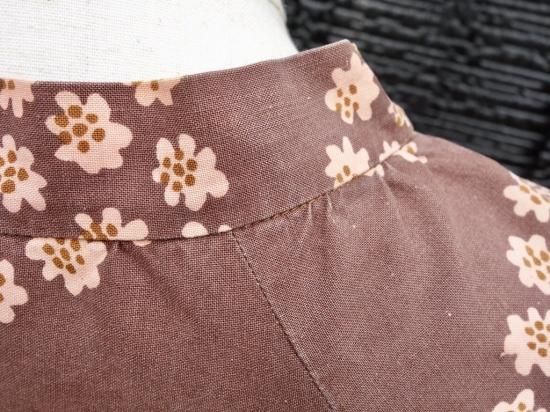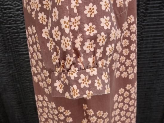 ミルクチョコレート色をベースに円状に散りばめられた花びらは薄い茶色と地とは違う濃茶色で彩られ大変可愛らしく描かれています。当時のプリント技術のズレが少し見られる箇所はありますが、これもヴィンテージらしさと捉えて頂ければ幸いです。