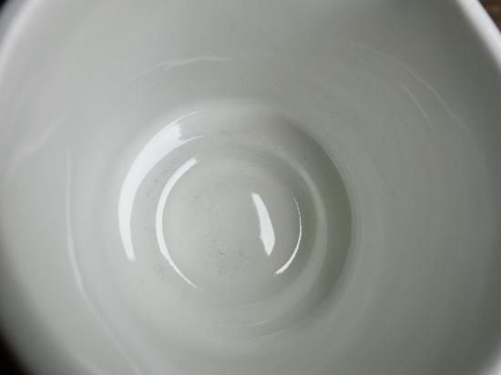 内面底部などのマダラくすみ(画像9 / 釉薬ムラかもしれません)は多少感じる部分はあるものの、細かな擦れやカトラリー跡など薄っすら僅かで概ね綺麗な状態と言えます。