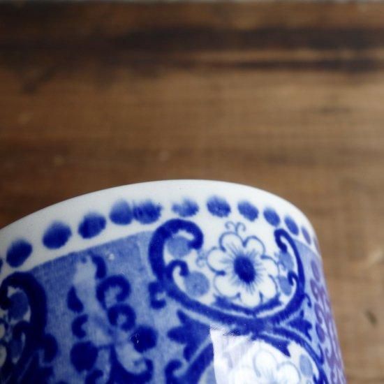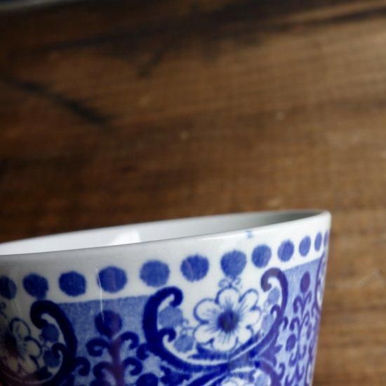 経年による風合いの変化は多少感じられますが、使用感はあまり感じられず、細かな擦れによるプリントの消え、色褪せ、滲み感などは強くはなく、目立つ擦れ、汚れ、欠けや割れなど見られないことから、この年代の器として、概ね綺麗な状態と言えます。※釉薬ムラや滲み感、ドットの大きさや間隔などの個体差は多少出ている可能性はございます。