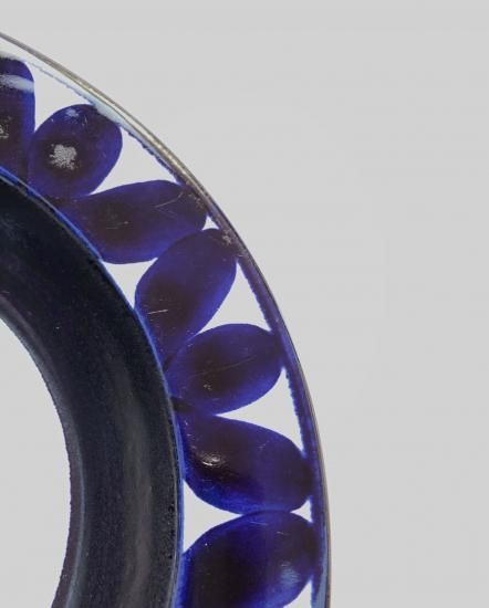 図案とコバルトブルー色のグラデーションの可愛らしさと美しさを持ち合わせた表情の豊かさにご注目下さい。カトラリー跡と言える細かな擦れや微細なキズなど(画像4-6 / 画像6は細かな擦れや微細なキズなど判りやすく撮影しておりますが基本目立つ感じの跡ではないと感じております。)の使用感は多少感じる箇所はあるものの、目立つ擦れ、キズ、汚れ、色褪せなど見当たらず比較的綺麗な状態と言えます。