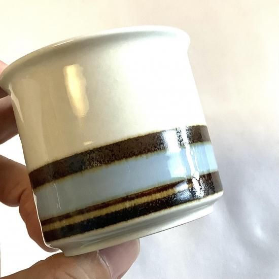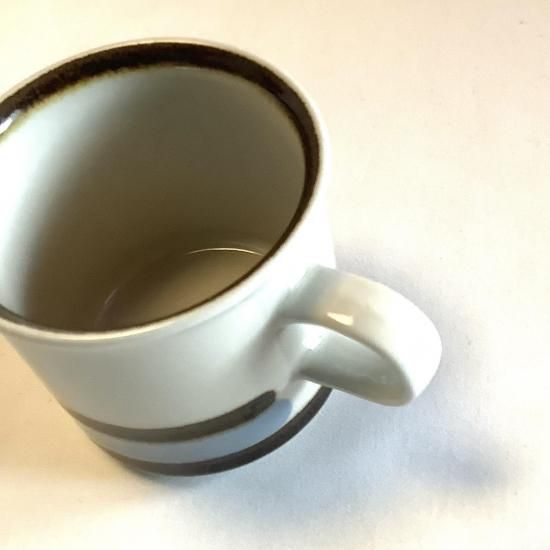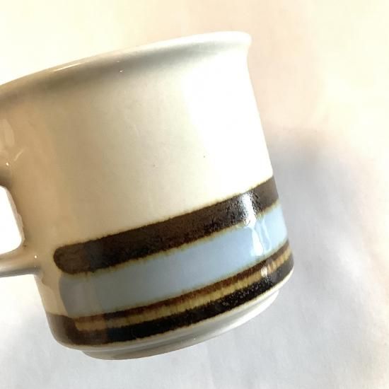 “Suvanto” は 1970年代頃にデザインされたシリーズ作品になります。フィンランド語で「静かな水の流れ」というような意味を持っており、フィンランド北部の湖の名前でもあるのです。茶色と水色ラインの組み合わせは、その名の通り、水色が湖、茶色が岸辺をシンプルに表現されています。ラインとの境いの絶妙な滲みが味わい深く、シンプルながらに表情の豊かさが感じられ、大人の雰囲気で楽しめる器と言えます。アラビアの主力デザイナーであったウラ・プロコッペが手掛けたフォルムをベースに、没後デコレーションは ARABIA デザインと言われています。